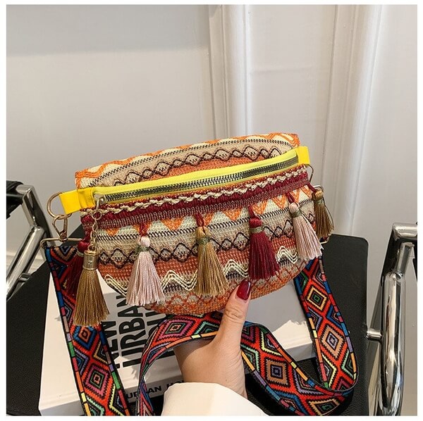 Possui alça regulável, tornando a bolsa boho chic a bem versátil e ideal para várias ocasiões.
