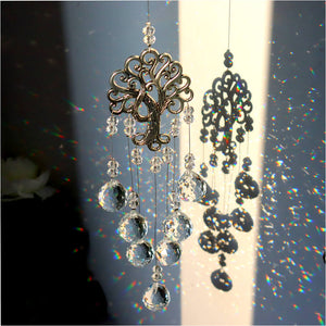 Quando um Apanhador de Sol é colocado na luz solar direta ou próximo a uma luz forte, ele dispersa essa luz em arco-íris coloridos e manchas de luz que se espalham por todo o ambiente. Ele pode levar a energia da luz solar para uma área sombria e têm sido usados por muitos para levar o bom Feng Shui para o quarto do casal, casa ou local de trabalho. É como um pequeno lembrete de que você deve ser feliz ou que um anjo está cuidando de você. Desfrute de um hoje – todo mundo merece um pouco de brilho em seus dias!