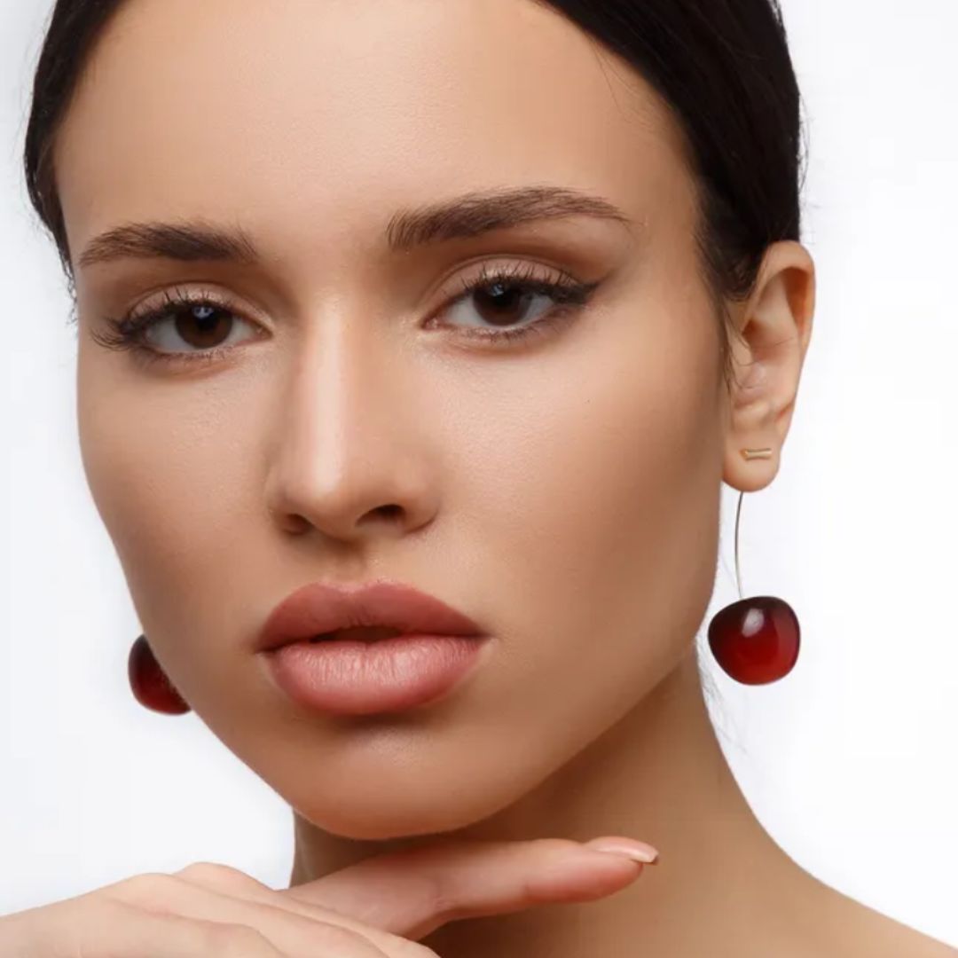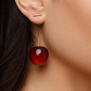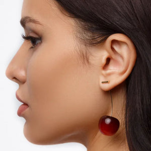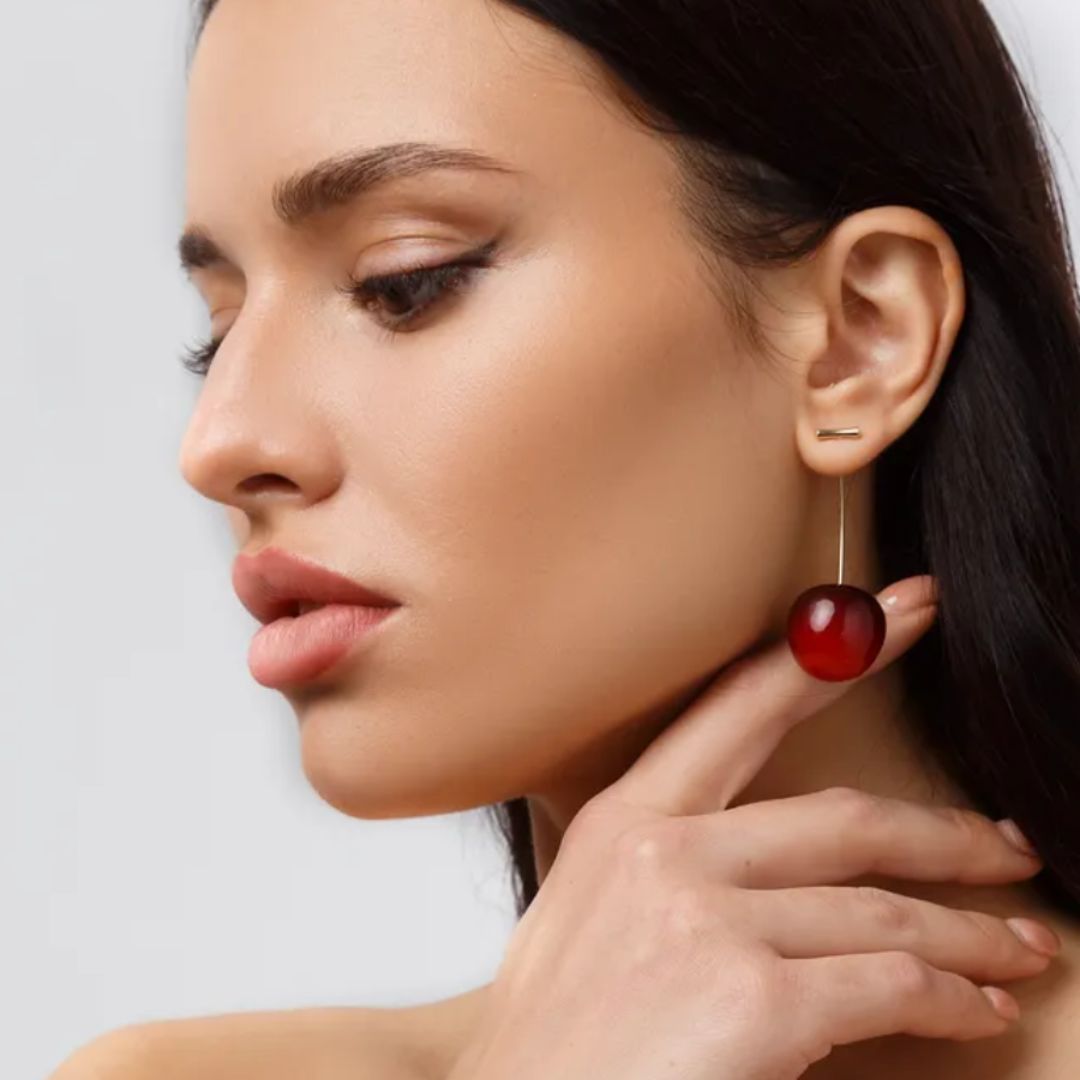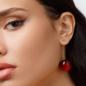 Confeccionado em acrílico de alta qualidade com estrutura metálica em liga de zinco, o brinco é leve, confortável e durável. O brilho sutil da cereja dá um acabamento sofisticado e irresistível.