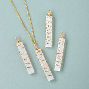 Envolto em fios delicados, o cristal é cuidadosamente trabalhado para criar um design que combina simplicidade e sofisticação. Ideal para qualquer ocasião, seu acabamento minimalista complementa qualquer estilo, fazendo com que o Colar de Selenita seja uma peça versátil e indispensável para seu dia a dia.