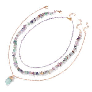 Combinando o charme rústico das pedras naturais e a delicadeza do design, o colar apresenta três camadas harmoniosas que criam um visual impactante. Suas cores vibrantes refletem a riqueza dos elementos da terra, enquanto o pingente principal, com acabamento dourado, adiciona um toque de requinte. Ideal para ocasiões especiais ou para complementar seu look casual com elegância.