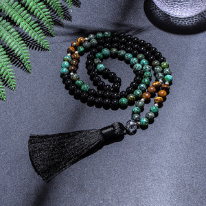 Japamala 108 Contas + Pulseira Turquesa Africana Ágata Negra e Olho de Tigre
