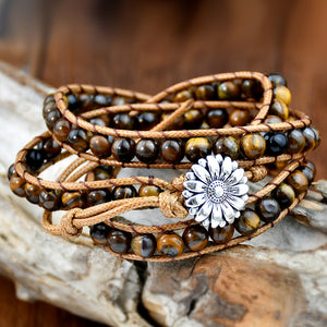 Esta elegante pulseira combina a robustez das pedras de Olho de Tigre com a suavidade da corda trançada, criando um equilíbrio perfeito entre força e beleza. Sua composição ajustável garante que ela se encaixe confortavelmente em qualquer pulso, enquanto seu design envolvente a torna um acessório marcante para qualquer ocasião. Além disso, o detalhe da flor de metal no centro adiciona um toque de sofisticação, fazendo desta pulseira uma escolha popular entre aqueles que buscam estilo e significado espiritual em suas joias.